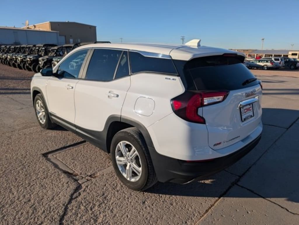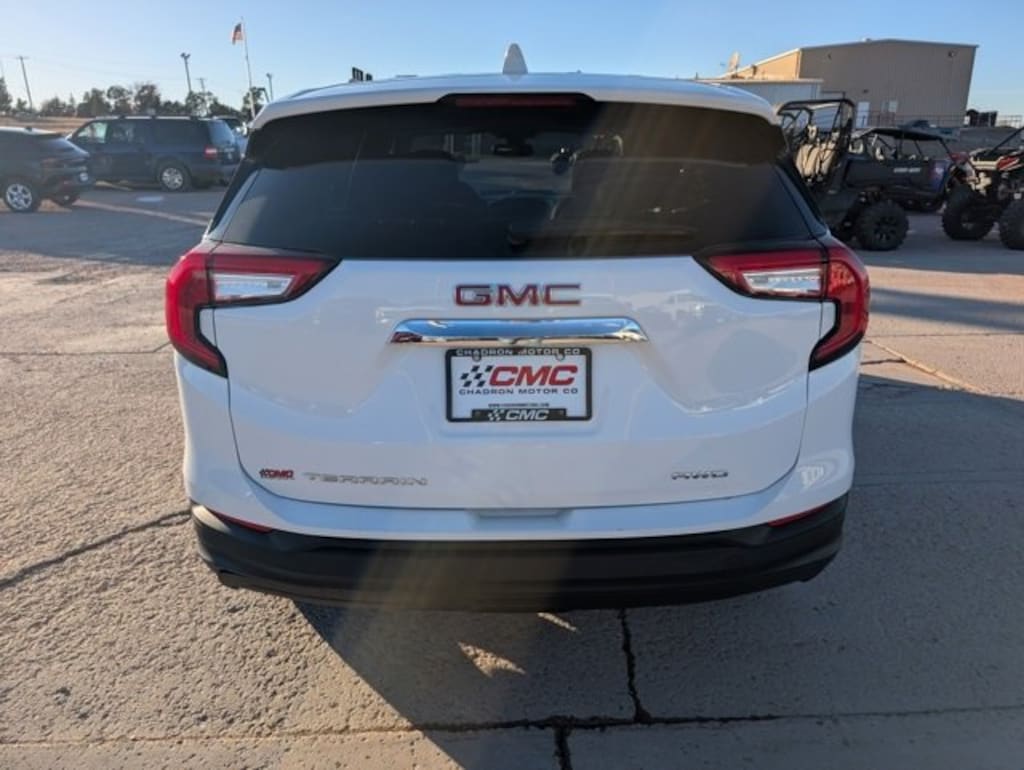 2024 GMC Terrain SLE Summit White AWD 1.5L DOHC 9-Speed AutomaticFeatures: AWD, 2 USB Data Ports w/Auxiliary Input Jack, 3.47 Final Drive Axle Ratio, 4-Way Manual Driver's Seat, 4-Way Manual Front Passenger Seat, 4-Wheel Disc Brakes, 4.2 Multi-Color Driver Information Screen, 6 Speakers, 6-Speaker Audio System Feature, ABS brakes, Air Conditioning, Alloy wheels, AM/FM radio: SiriusXM, Auto High-beam Headlights, Auto-dimming Rear-View mirror, Automatic temperature control, Bluetooth® For Phone, Brake assist, Bumpers: body-color, Compass, Delay-off headlights, Driver door bin, Driver vanity mirror, Dual front impact airbags, Dual front side impact airbags, Electronic Stability Control, Emergency communication system: OnStar and GMC connected services capable, Four wheel independent suspension, Front anti-roll bar, Front Bucket Seats, Front Center Armrest, Front reading lights, Fully automatic headlights, Heated door mirrors, Illuminated entry, Low tire pressure warning, Occupant sensing airbag, Outside temperature display, Overhead airbag, Overhead console, Panic alarm, Passenger door bin, Passenger vanity mirror, Power door mirrors, Power steering, Power windows, Preferred Equipment Group 3SA, Premium Cloth Seat Trim, Radio data system, Radio: GMC Infotainment Audio System w/7 Display, Rear anti-roll bar, Rear seat center armrest, Rear window defroster, Rear window wiper, Remote keyless entry, Security system, SiriusXM, Speed control, Speed-sensing steering, Split folding rear seat, Spoiler, Steering wheel mounted audio controls, Tachometer, Telescoping steering wheel, Tilt steering wheel, Traction control, Trip computer, Variably intermittent wipers, Wheels: 17 x 7 Silver Painted Aluminum, Wireless Apple CarPlay/Wireless Android Auto, AWD.CARFAX One-Owner.Odometer is 12162 miles below market average!23/28 City/Highway MPGCome To www.GMCofChadron.com To See Our Specials!! Call us at (308)432-9004 For Help with Any of Our Departments!!FREE DELIVERY UP TO 300 MILES!!!